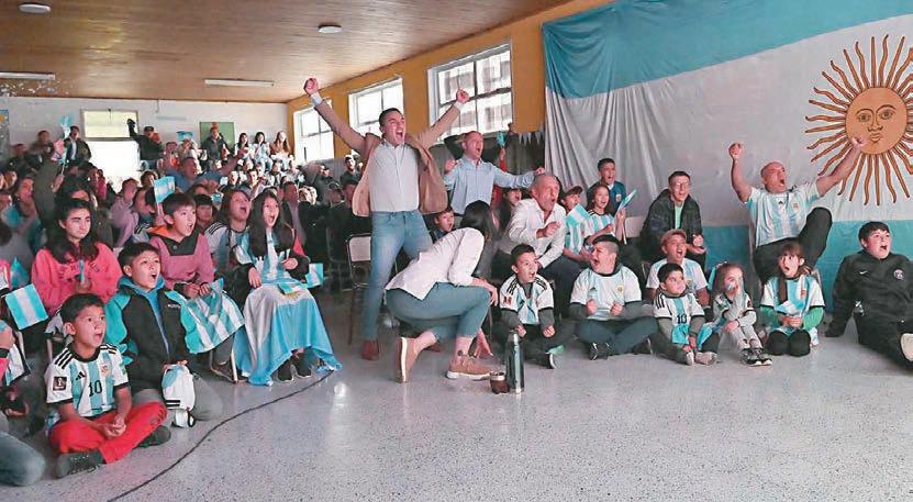 El gobernador Mariano Arcioni estuvo en la Escuela 10 de Carre lnleufú donde sortearon televi sores LED 50’ y camisetas de Argenti na. Además designó a Gabriel Rosas como interventora de la comuna. Con alumnos y vecinos, disfrutó el debut de Argentina en el Mundial de Qatar 2022. Estuvo la directora de la Escuela, Erica Morales y docentes.