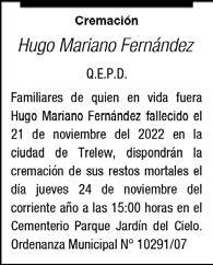 El día (19-11-22) a las 20.00 horas falleció en Rawson. El Sr Ambrosio Antiqueo a la edad de 87 años. su hija, nieto y demás familiares participan su deceso. Sus restos recibieron sepul tura en el Cementerio Municipal de la Ciudad de Trelew el día (20-11-22) a las 16.00 horas. Su desaparición enluta a las Familias de Antiqueo, Huisca, Dummer, Orrego y otras.