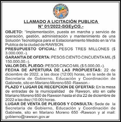 Publicidad: Departamento Comercial Yrigoyen 583 Tel.: (0280) 442-2209. e-mail: gcomercial@grupojornada.com