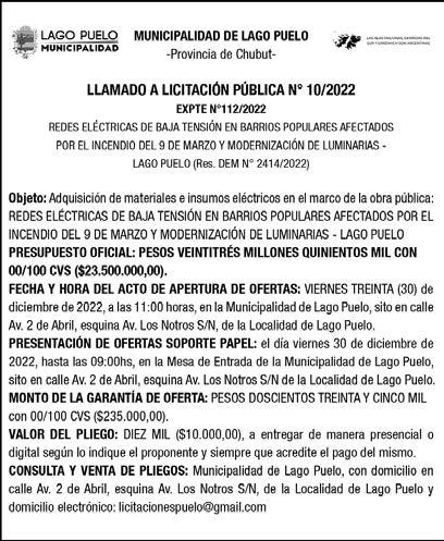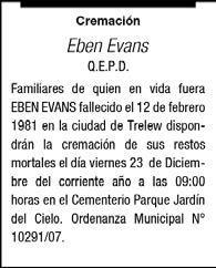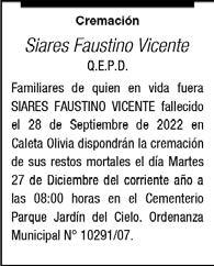 El día (20-12-22) a las 17.40 horas falleció en Trelew. El sr. Rosales Antiñir a la edad 92 años. Su sobrina, hermana, y demás familiares participan su deceso. Sus restos recibieron sepultura en el cementerio municipal de la ciudad de Trelew (21-12-2022) a las 15:00 horas. Su desaparición enluta a las familias de: Antiñir, Vicente González, Sepúlveda y otras.