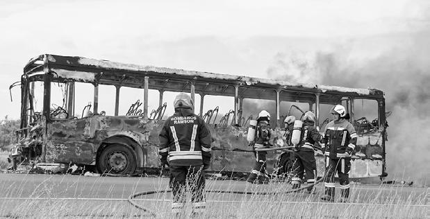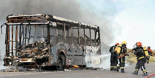 intervinieron los bomberos por una falla eléctrica un colectivo se prendió fuego cuando iba de rawson a trelew, en la zona de las cinco esquinas. sus 30 pasajeros lograron salir ilesos. P. 23