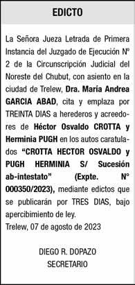 La Acordada N° 5260 /2023 encomienda a la Jueza de Familia N° 1 de Esquel, Mariela Alejandra González y a la Jueza de Familia N° 2 de Puerto Madryn, Delma Irina Viani, “la tarea de realizar un relevamiento de procesos, como así también la de ponerse a disposición de Colegio de Jueces de Familia de Comodoro Rivadavia y de la Coordinación de la OGUFCR para el acompañamiento, orientación y asesoramiento a fin de propiciar posibles soluciones conjuntas para la actual situación”.#