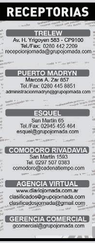Domicilio legal: Yrigoyen 583 (9100) Trelew, provincia de Chubut. Tel./Fax: (0280) 442-2209 (líneas rotativas). recepcionjornada@grupojornada.com