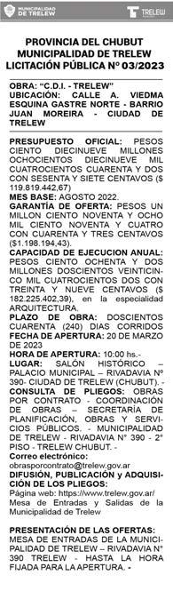 Se ofrece oficila labañil para campo o chacra, apmliaciones casa y galpones. Trelew. Cel. 0280 154714046 (0103) Se realizan trabajos metalurgitos portones corredizos casa de frente. Trelew. Cel. 0280 154382470 (2202)