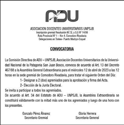 Publicidad: Departamento Comercial Yrigoyen 583 Tel.: (0280) 442-2209. e-mail: gcomercial@grupojornada.com