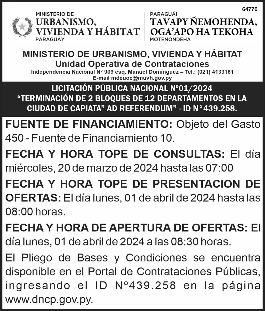 SUCESIÓN. El Juez de Primera Instancia en lo Civil y Comercial del Tercer Tumo de la Ciudad de San Lorenzo, Secretaría 6, Mgs. Felipe Mercado Navarro, CITA Y EMPLAZA por sesenta días a herederos y acreedores de la sucesión de CRISTINA FERREIRA DE MORA. SAN LORENZO, 6 de marzo de 2024. Se hace saber al destinatario de este Edicto que el mismo cuenta con el Código QR, por lo cual, para tener certeza de que este documento es válido, deberá utilizar el lector del Código QR, siendo ya en consecuencia, innecesaria la autenticación manual del Actuario del Juzgado conforme Acordada 1366/19 de la Excelentísima CSJ.-64629/17/03.-