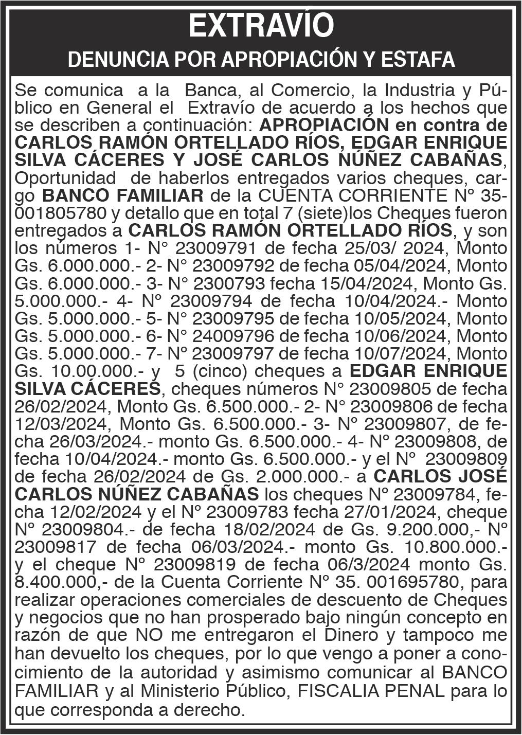 REINALDO KUNZ. Ciudad del Este, 7 de marzo de 2024. (Actuario Judicial, Fredy A. Colman, Secretaría N° 07). Se hace saber al destinatario de este edicto que el mismo cuenta con el Código QR, por lo cual, para tener certeza de que este documento es válido, deberá utilizar el lector del Código QR, siendo en consecuencia, innecesaria la autenticación manual del Actuario. -64671/17/03.-