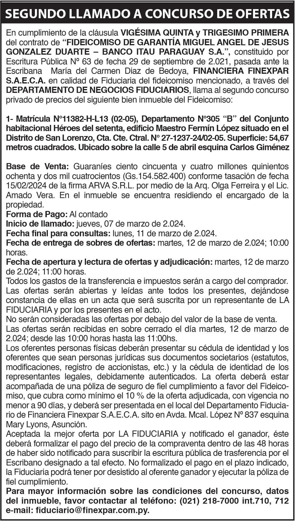 SAN PEDRO DE YCUAMANDYYÚ, 4 de marzo de 2024. Se hace saber al destinatario de este documento que el mismo cuenta con el Código QR, por lo cual, para tener certeza de que este documento es válido, deberá utilizar el lector del Código QR, siendo ya en consecuencia, innecesaria la autenticación manual de la Actuaria del Juzgado conforme Acordada 1366/2019. Firmado digitalmente por: Mercedes Margarita Ramírez Cubilla (Actuaria).-64512/16/03.-