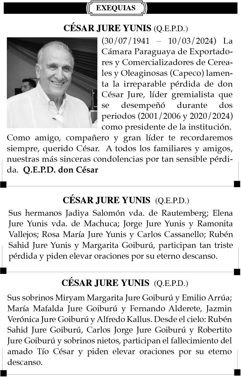 SUCESIÓN. La Juez de Primera Instancia en lo Civil y Comercial del PRIMER TURNO DE LA CIRCUNSCRIPCIÓN DE CAAGUAZÚ, con asiento en la ciudad de Cnel. Oviedo, Abg. LILIAN ROSMARY GONZÁLEZ DE DUARTE, cita y emplaza por sesenta días a herederos y acreedores de la sucesión de JUAN FELIX SANTACRUZ .- CORONEL OVIEDO, 5 de marzo de 2024. Ante mí: ADELA BENITEZ RAMOS.