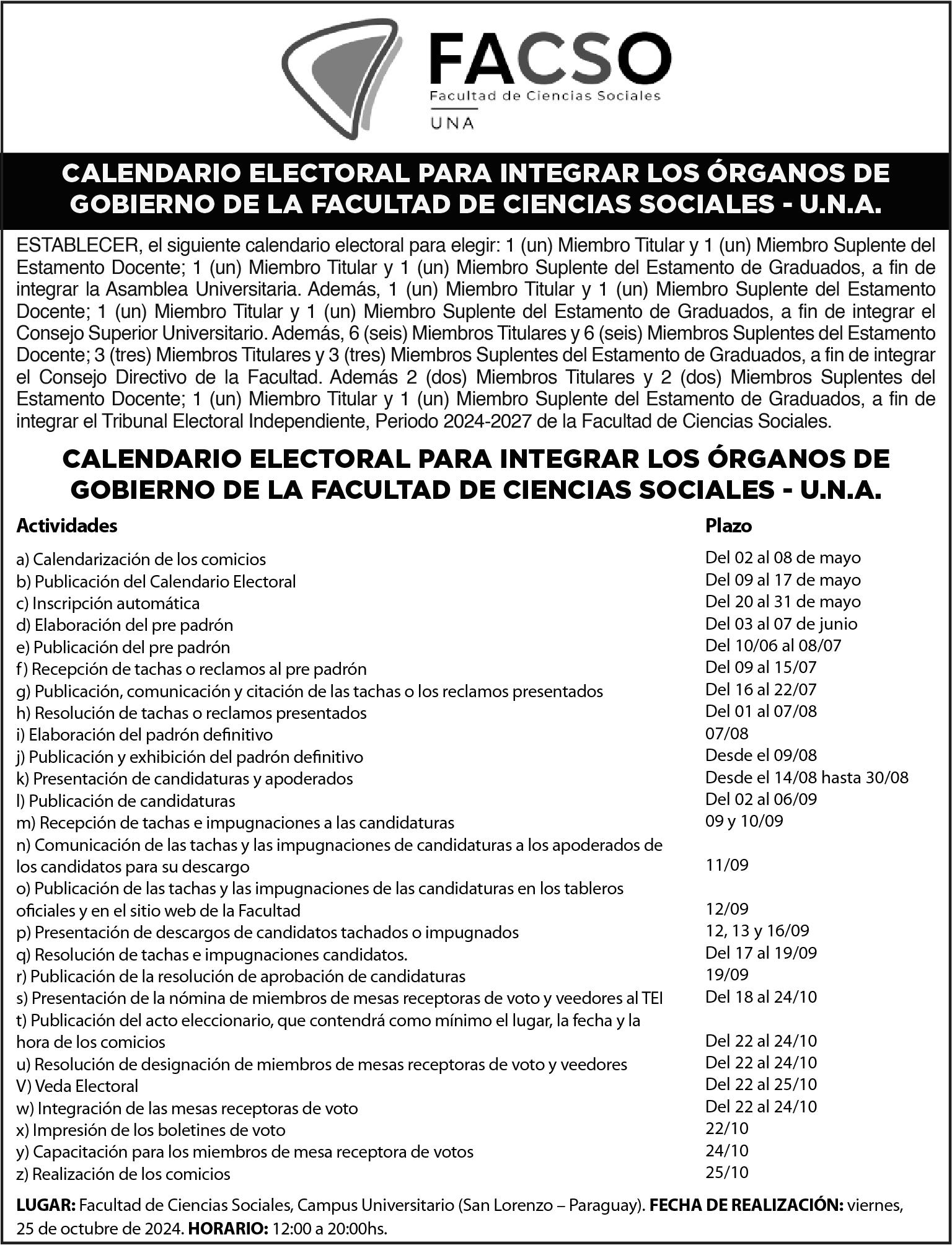ASAMBLEA GENERAL ORDINARIA. EL TRIBUNAL ELECTORAL INDEPENDIENTE, LA ASOCIACION DE CASILLEROS UNIDOS DE CIUDAD DEL ESTE , en uso de sus atribuciones conforme lo establece el art. 31 del estatuto social, convoca a los asociados para la Asamblea General Ordinaria a llevarse a cabo en fecha 23 de junio de 2024, desde las 9:00 horas hasta las 13:00 horas, en el local del tinglado de la Asociación, bajo el siguiente orden del día: 1) Elección de presidente y secretario de asamblea y de dos socios que suscribirán el acta de asamblea; 2) Presentación de memoria y balance general de la comisión directiva saliente, rendición de cuentas, ingresos, egresos; 3) Elección de nuevas autoridades. La primera convocatoria se fija para las 8:30 horas y la segunda para las 9:00 horas, bajo, apercibimiento de que la asamblea se llevara a cabo con cualquier número de socios presentes. 69615/12/05-