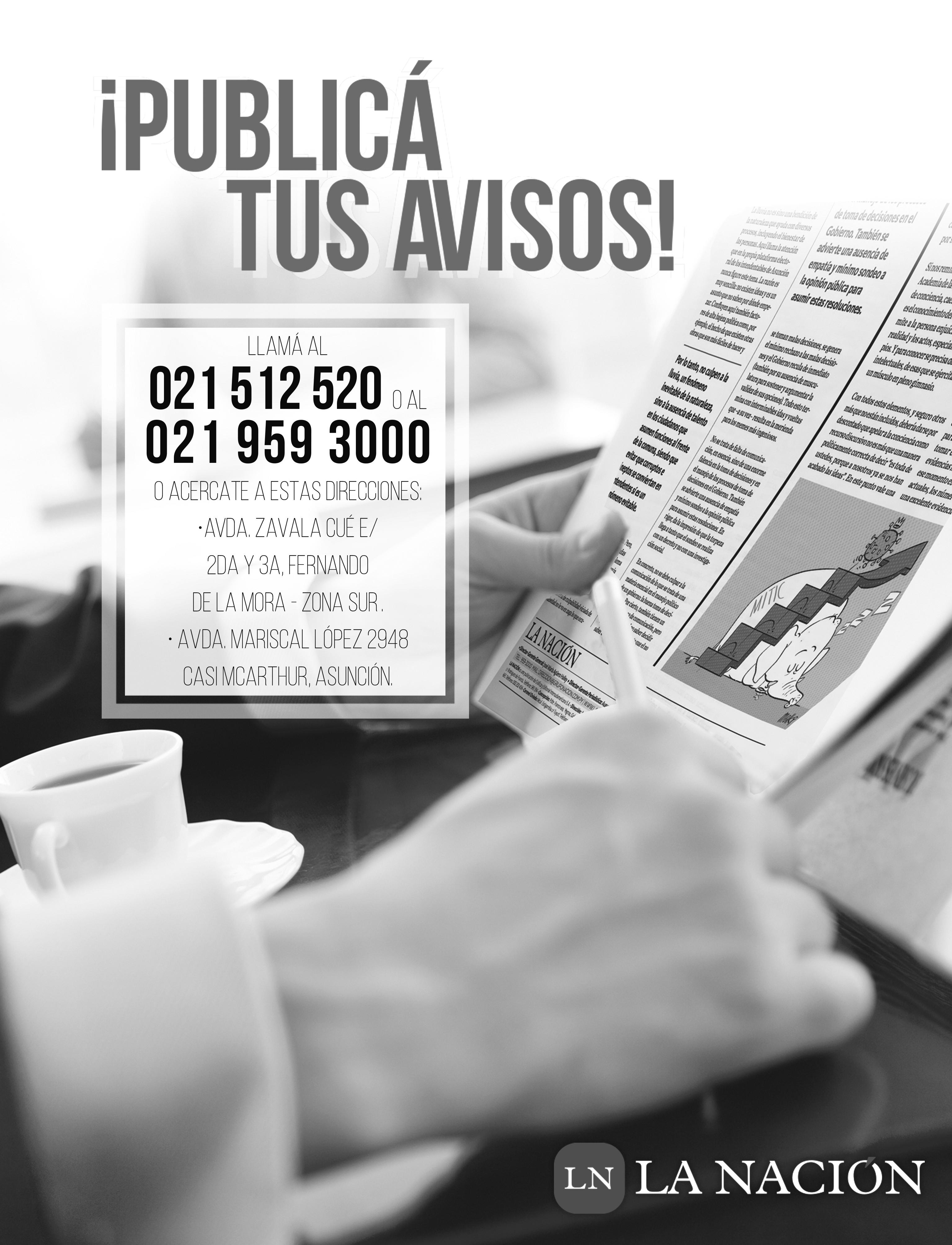 Anuncia con nosotros llamando al (021) 959 3161 o escríbenos al e-mail: comercial@nacionmedia.com