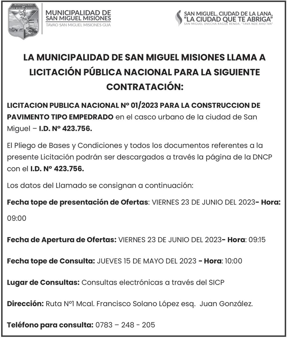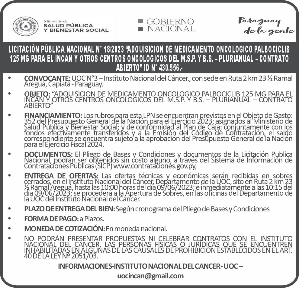 ASAMBLEA GENERAL ORDINARIA. El Directorio de la firma LOS CABRALES S.A., convoca a Asamblea General Ordinaria a celebrarse el día 20 de junio de 2023 a las 15.00 hs., en primera convocatoria y la 17:00 hs segunda convocatoria, en el local social de la firma Avda. Colon c/ Campo Vía frente al Área 4 a 300 mts. de la Universidad San Lorenzo, B° Fátima, Ciudad del Este, Alto Paraná, Paraguay, para considerar el siguiente orden del día: