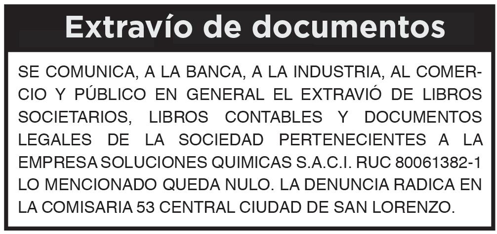 a saber: “Para tomar parte de las deliberaciones de las Asambleas, los accionistas deberán depositar sus acciones en la caja social con tres (3) días hábiles de anticipación por lo menos, o presentar un recibo o certificado expedido por un banco del país o del extranjero que acredite hallarse depositadas en él las acciones. Dicha certificación bancaria deberá adjuntar fotocopia autenticada, en anverso y reverso, de las acciones depositadas. Los accionistas recibirán a cambio un boleto de entrada en el cual constará el número de votos a que tienen derecho.” El Directorio. Asunción, 28 de febrero de 2024. 64331/09/03-