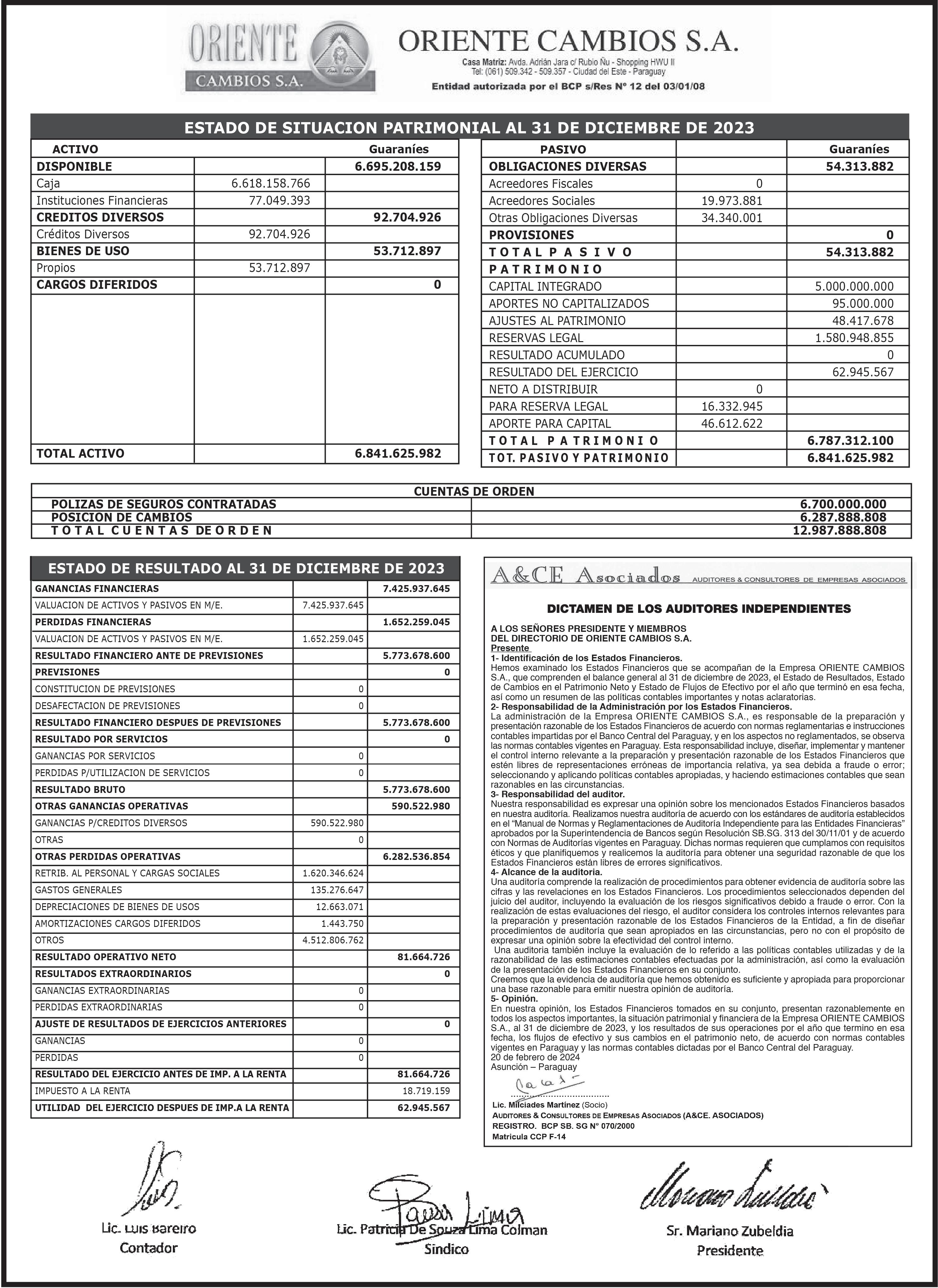 dro de Resultados, correspondiente al ejercicio cerrado al 31 de diciembre 2023, e Informe del Síndico. 3-Designación de un nuevo Directorio. Designación de Síndicos.