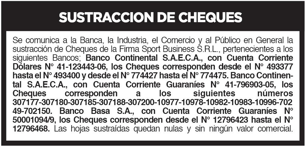 A ASAMBLEA ORDINARIA DE ACCIONISTAS. Convoca a Asamblea Ordinaria de Accionistas para el día 17 de abril de 2024, a las nueve horas, en el local social, sito en la calle Primera paralela a Azara, de la ciudad de Luque, para tratar el siguiente ORDEN DEL DÍA:1) Designación de Presidente y Secretario de Asamblea; 2)Lectura y consideración de la Memoria del Directorio, Balance General, Cuadro Demostrativo de Ganancias y Pérdidas, Destino de utilidades e Informe del Síndico correspondiente al ejercicio cerrado el 31 de diciembre de 2023; 3)Elección de miembros del Directorio y fijación de sus remuneraciones; 4)Designación de Síndico Titular y Suplente, y fijación de la remuneración del Síndico Titular; y, 5)Designación de dos Accionistas para suscribir el acta de Asamblea. Se recuerda a los socios o representantes la obligación de depositar en la sociedad las acciones o los certificados de depósito de las acciones con no menos de tres días de antelación a la fecha fijada para la asamblea. EL DIRECTORIO. -66490/07/04.-