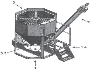 tud: 17/10/2022 13:38:58 (71) Solicitante: CIMISA MÁQUINAS POZZER LTDA. EPP Domicilio Solicitante: Av. Sete de Setembro 1633. Tapejara/RS.CEP 99950-000, Brasil (72) Inventor: SUZANA DE ARRUDA POZZER POGGIO Domicilio Inventor: Rua Waldomiro Sebben, 471. Tapejara/RS.CEP 99950-000, Brasil (54) Título: DISPOSICIÓN CONSTRUCTIVA APLICADA EN MEZCLADOR DE SEMILLAS DE DOBLE HELICOIDE (74) Agente: Raquel Toñanez Ortiz - 333 (30) Prioridad/es: BR 20 2022 017096-2 - 26/08/2022 - BR (51) Int. CI 8: A 0lC 15/00(2006.01) En cumplimiento al Artículo 1 de la Ley Nº 2593/05 que modifica el Artículo 23 De publicaciones de la Ley Nº 1630/00 de Patentes de Invención, se dispone que a partir de la fecha de la presente orden de publicación, esta solicitud de patente se hace pública y se ordena su publicación por el término de la Ley. (57) Resumen: (291/22) (MU). El presente modelo de utilidad pertenece al sector tecnológico agrícola y se refiere, más específicamente, a un mezclador formado por chasís (1), conjunto motriz (2) tanque de mezcla (3), doble helicoide de mezcla (4) y conjunto de transporte (5) destinado a la optimización y homogeneización y procesamiento de semillas junto con sustancias líquidas, sólidas y pastosas, actuando en la preparación de la semilla para el plantío. El chasís (1) es una estructura rígida con el objetivo de soportar los demás componentes del equipo. El conjunto motriz (2), como se muestra en las figuras 2 y 3, consiste en un eje acoplado (2.1) en dos cojinetes con rodamiento (2.2) y engranaje doble (2.3) unidos por cadena doble (2.4) a otro engranaje doble (2.5) acoplado a un cojinete con rodamiento (2.6) dirigido a una caja reductora mecánica (2.7) que, finalmente, se acopla por el eje (2.8) al doble helicoide (4). El tanque de mezcla (3) tiene como objetivo acomodar las semillas durante la mezcla. Preferiblemente, debe construirse en acero carbono. El doble helicoide de mezcla (4), ver figura 5, consta de helicoide central (4.1) fijado al eje (4.2) y helicoide exterior (4.3). Farm. Berta Segovia, Directora Interina, Dirección de Patentes.69214/04/05-