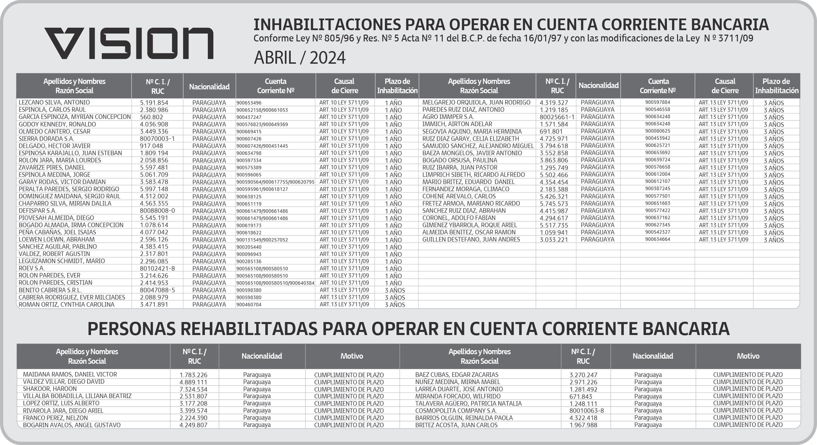S.A., con Ruc No 80141847-0, constituida por escritura pública N.º 201 del 04/05/1995 comunica al público en general que conforme a la resolución de la Asamblea General Extraordinaria de fecha 05/04/2024 ha decidido la disolución de la empresa y cierre definitivo por lo que el Balance General de cierre y clausura ya se encuentra a disposición de los interesados en el domicilio cito en la calle Emigdia Reisofer N.º 1255 en el horario de 08:00 a 17:00 por un plazo de 30 días anticipado.-70442/01/06.-