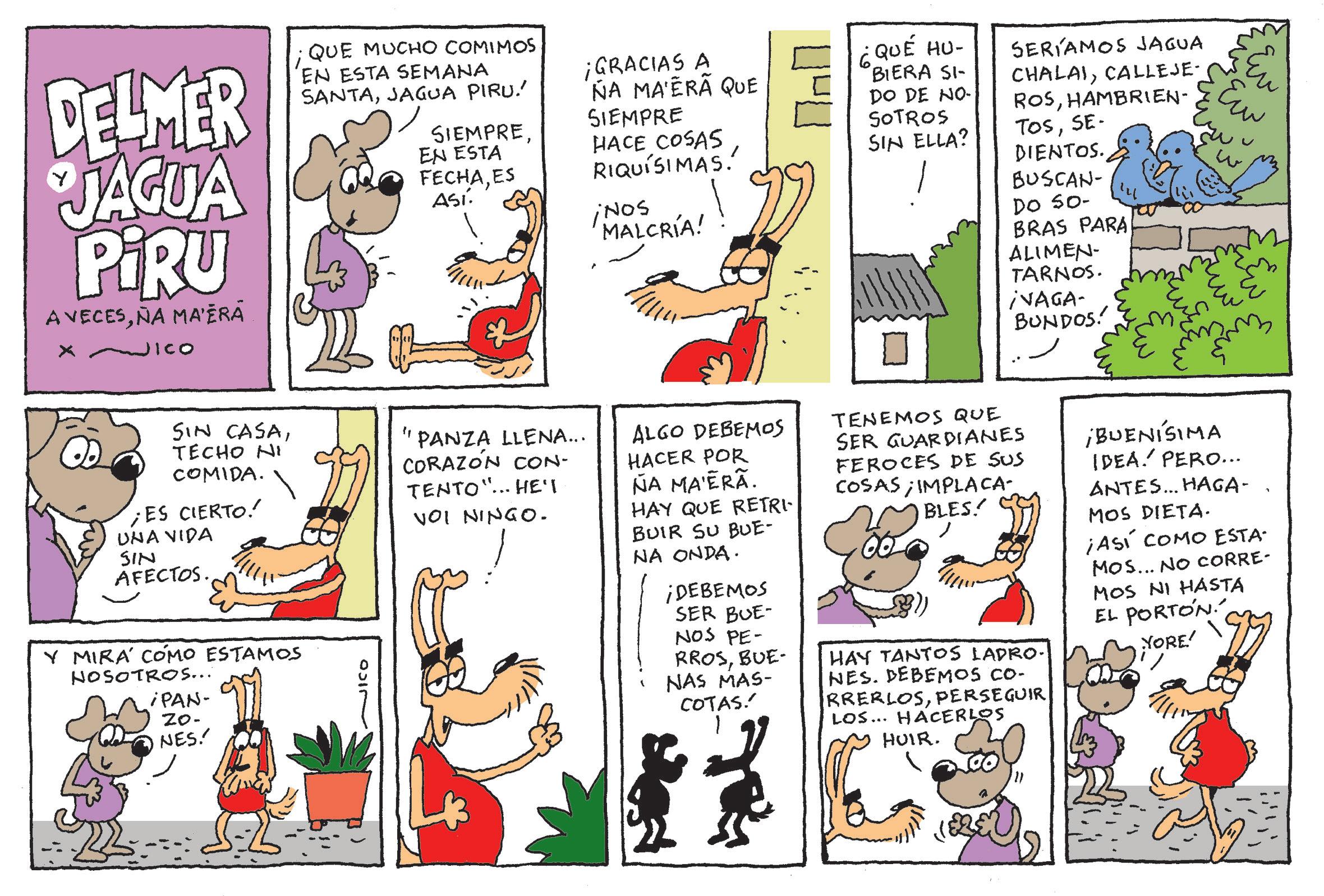 En estos días, en el tatakua se cocinaron chipas, carne de cerdo, carne de gallina, cabra, oveja...y Dido vino a revisar si no quedó alguna cosa que pueda saborear. Pinta la escena con los colores que más te gusten.