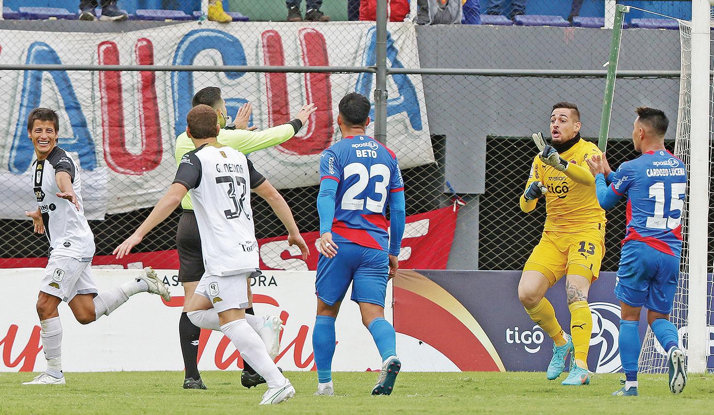 ros en la cabina consideraron que hubo doble toque de Domínguez y dieron la orden a Derlis López para que convalide el polémico gol a favor de Tacuary.