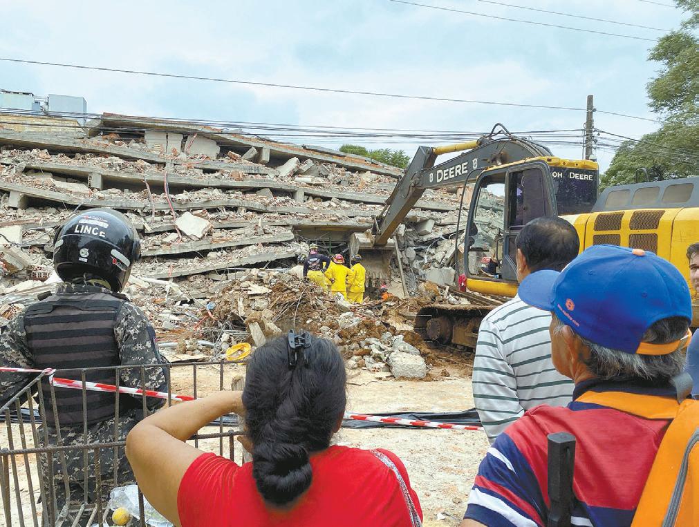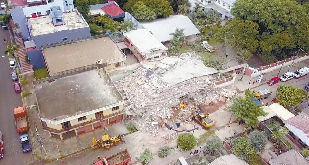 El edificio en construcción que colapsó en Encarnación, arrojando dos víctimas fatales, presentaba fallas en el diseño. Según el plano, presentado y aprobado por la municipalidad local, fue proyectado para cinco pisos, pero se construyeron más. Concejales apuntan al intendente Luis Yd y hablan de un “acto criminal”. P. 16