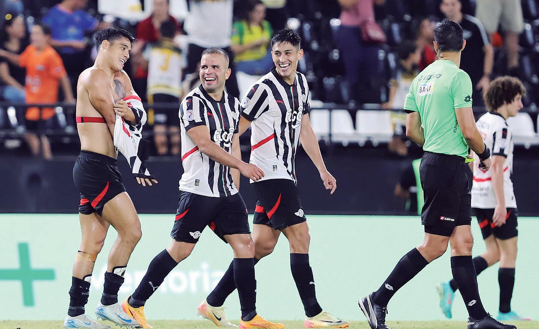 La alegría en el rostro de Lorenzo Melgarejo y sus compañeros, tras el gol en tiempo de descuento que le sirvió a Libertad para sumar otra victoria más