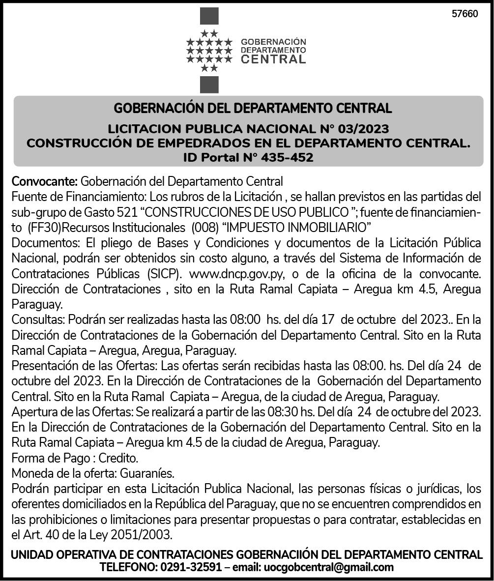 junta con el Gobierno Nacional para construir un nuevo departamento. Si a Central le va bien, al Paraguay también le irá bien, teniendo en cuenta la cantidad de pobladores que tiene”, dijo.