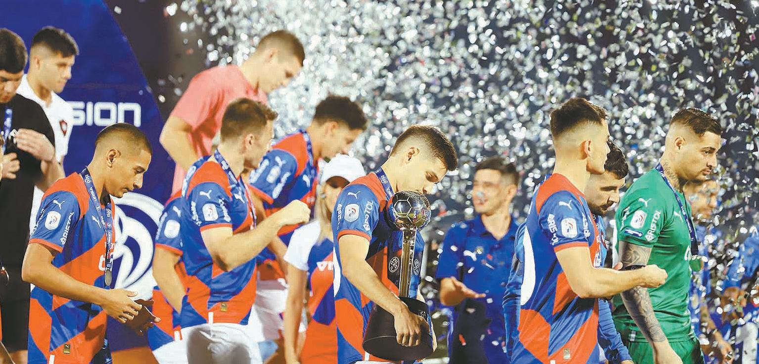 Jugadores de Cerro Porteño con caras largas durante la premiación al subcampeón