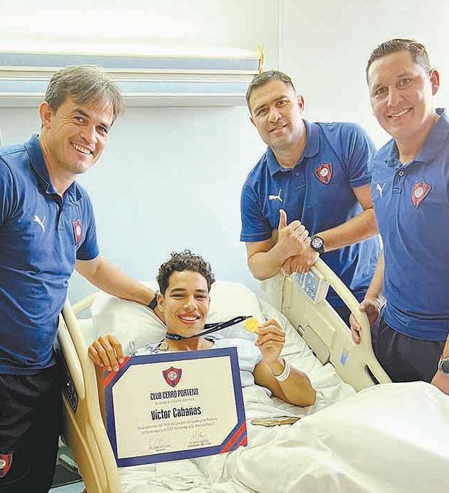 El futbolista de Cerro Porteño Víctor Cabañas fue intervenido ayer tras sufrir fractura de tibia y fisura de peroné en ocasión de su debut ante Libertad. La delicada lesión ocurrió en una acción accidental con el liberteño Adrián Alcaraz, quien fue expulsado. Cabañas recibió su medalla de subcampeón en el hospital.