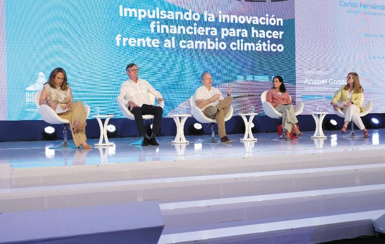 Robert Harrison, Natalia Cabarcos (centro) y Noelia Barrios durante el lanzamiento de la temporada 2024 del fútbol femenino