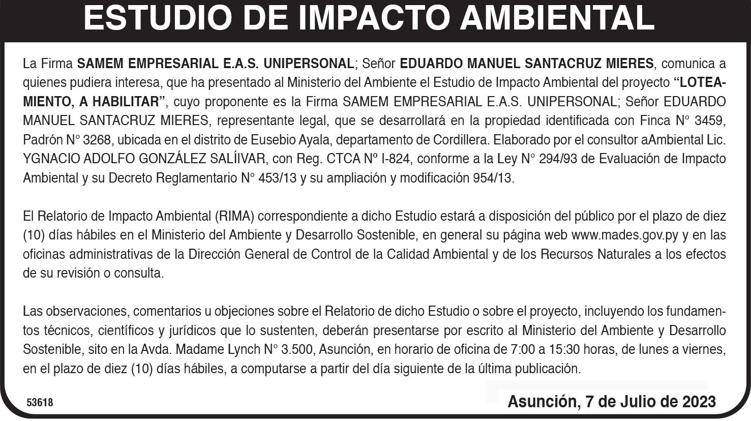 mía del Paraguay. Al respecto, el congresista puntualizó que la iniciativa también contará con el respaldo de sus colegas de sectores de la oposición.