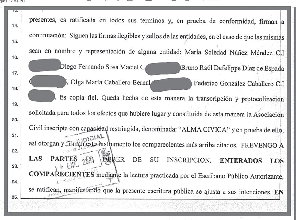 Olga Caballero, parte del clan Núñez-Defelippe y relevo de Soledad Núñez en algunas oenegés –una de ellas, Alma Cívica–, inició un tour mediático para dar cátedra sobre democracia, mientras su empresa “sin fines de lucro” continúa sin aclarar el manejo de sus millonarios fondos.
