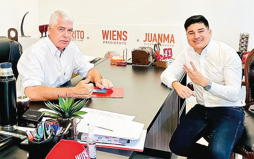 Este joven tuvo un auge expo nencial en cuanto a bienes y salarios, siempre de la mano de Wiens, a quien acompañó tanto en el Senado como en el MOPC. Según los detalles que obran en su declaración jurada de bienes y rentas pre sentada ante la Contraloría General de la República, este pasó de tener un patrimonio neto de solamente G. 188.000 a declarar cuatro años des pués G. 350.277.457.