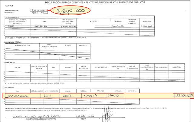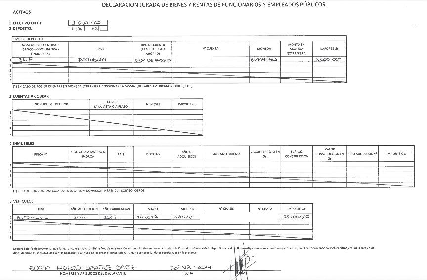 El secretario de Arnoldo Wiens solamente tenía un Toyota Spacio y G. 3 600 000 en depó sito y su patrimonio neto era de apenas G. 188 000 en el 2014