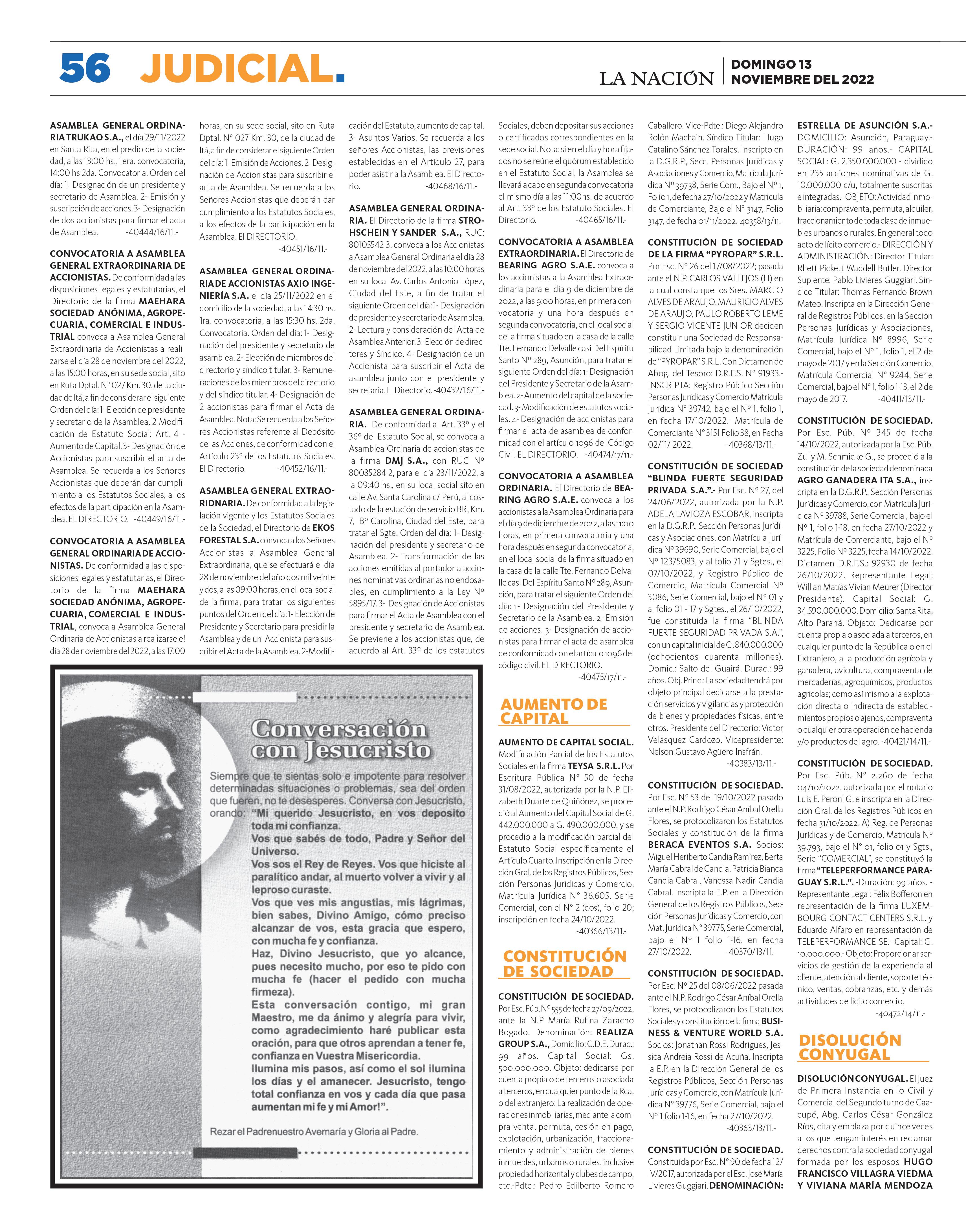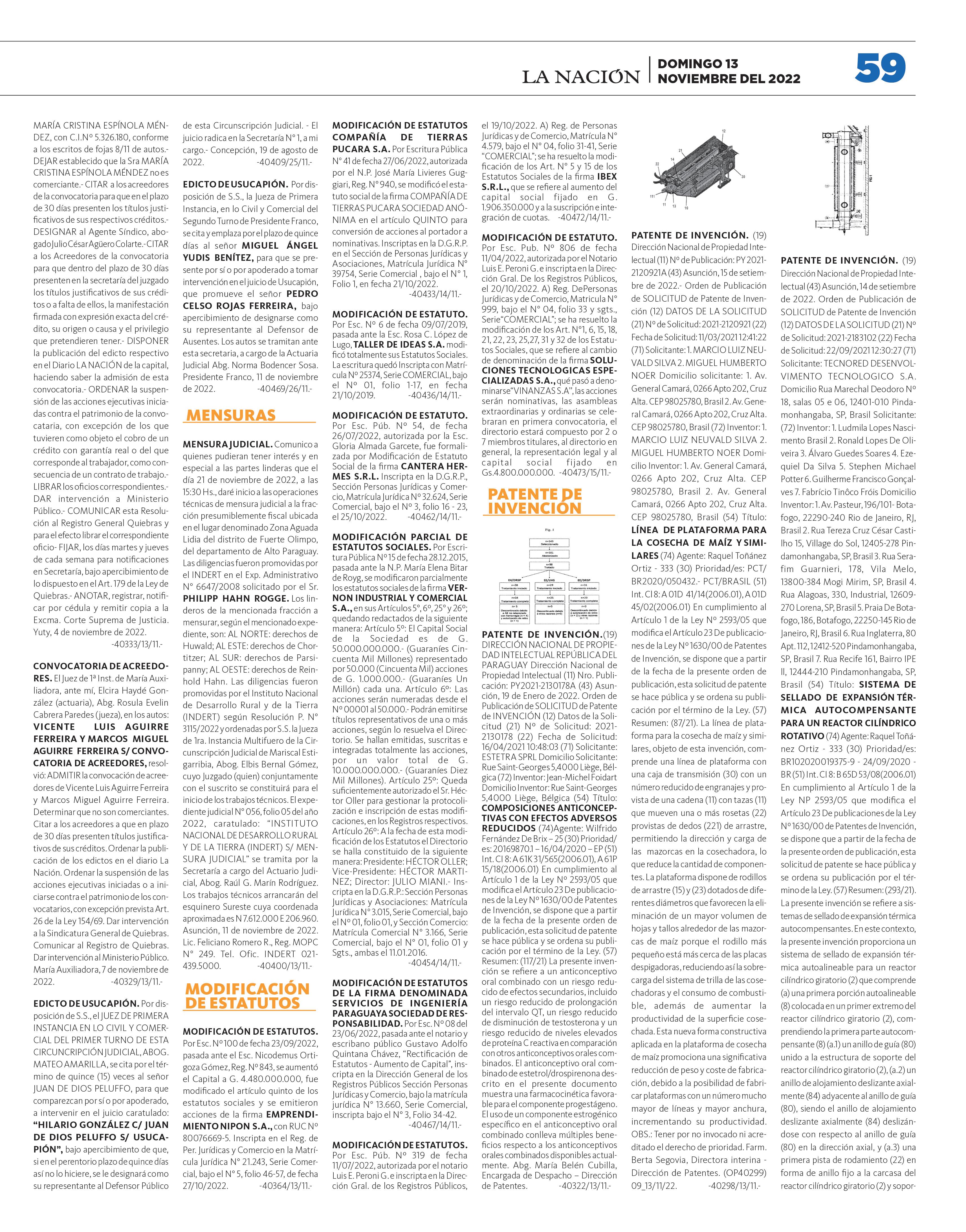DOMINGO 13 DE NOVIEMBRE DEL 2022 PARAGUAY AÑO 28 · Nº 9.982 G. 10.000 GENTILEZA