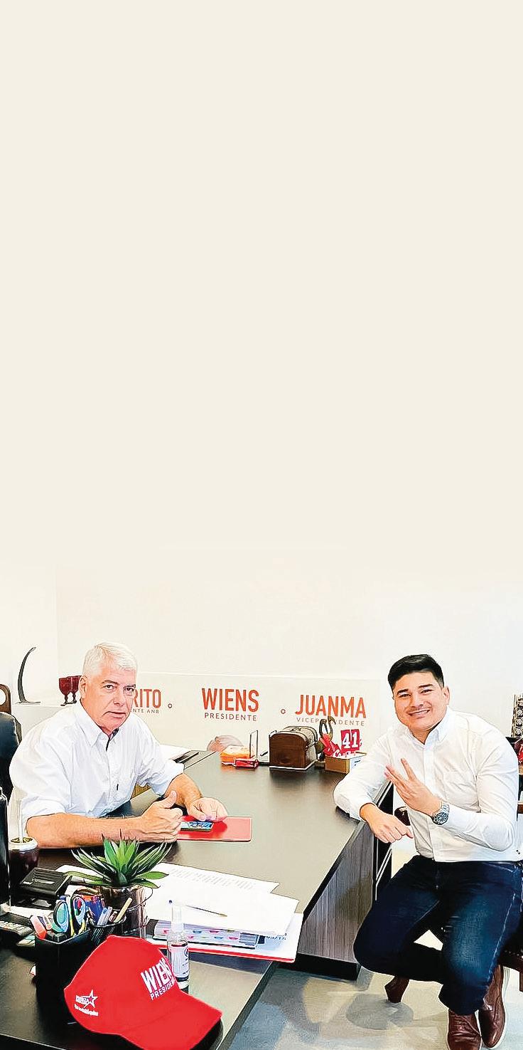 Édgar Ibáñez, de 32 años, aparece en la lista para diputados por Fuerza Republicana. Es uno de los mimados de Arnoldo Wiens e ingresó a la función pública cuando el actual precandidato del abdismo llegó al Senado. De su mano tuvo un rápido ascenso: pasó de declarar un patrimonio de G. 188.000 a otro de G. 350.277.457 en 53 meses. Ibáñez formó parte del cuestionado comité de evaluación de ofertas de licitaciones del MOPC, duramente criticado por empresarios de la construcción. P. 3