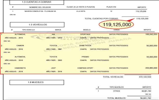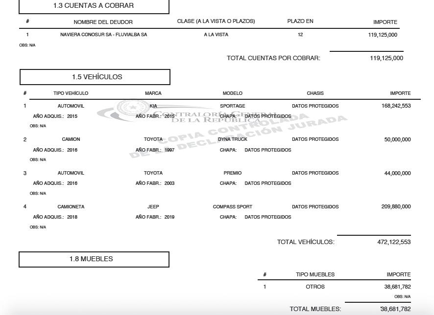 Según la declaración jurada presentada por Ibáñez en el 2018, este ya contaba con depósitos en tres entidades financieras que alcanzaban G. 31.105.711 y los valores de sus muebles eran de G. 38.681.782.