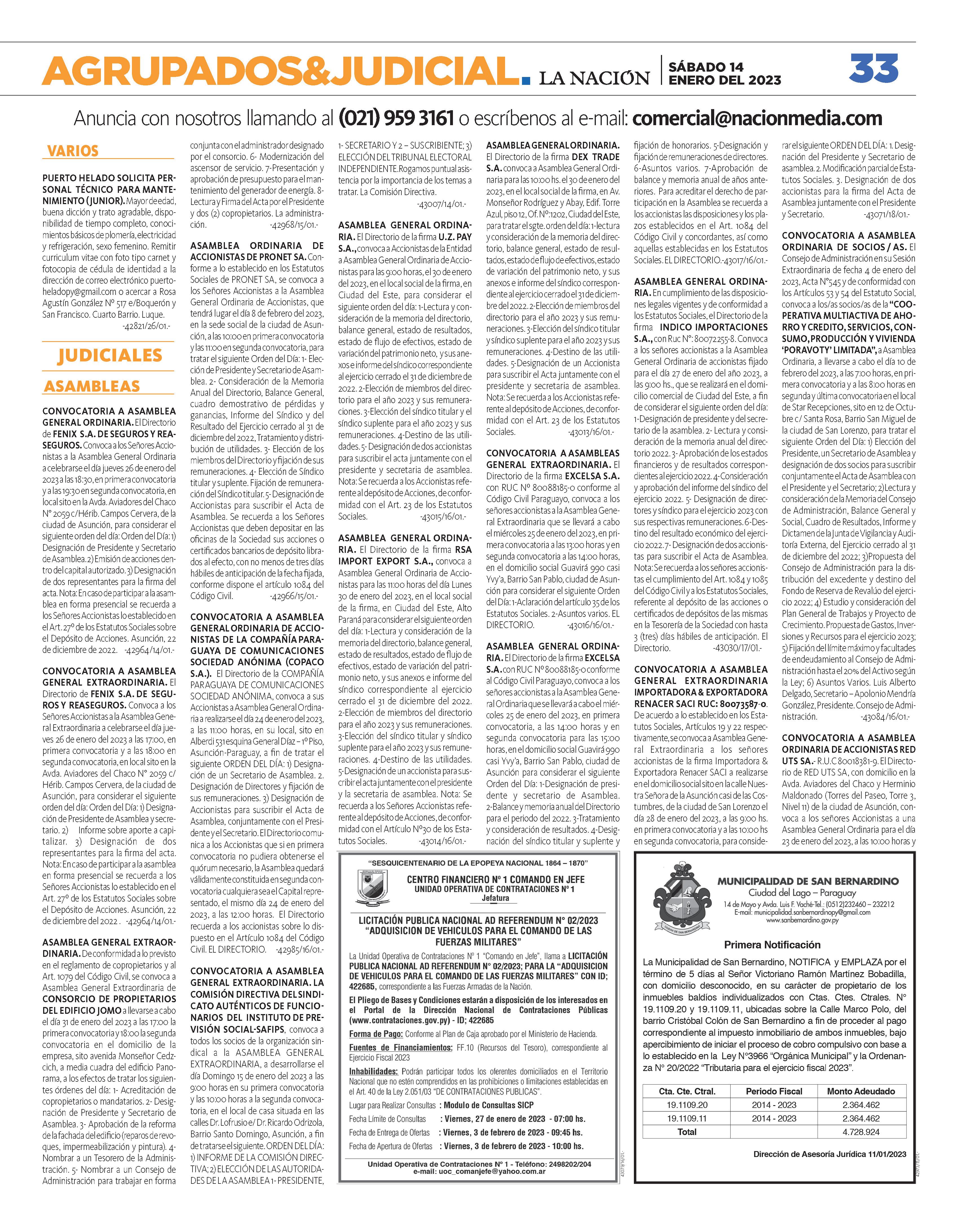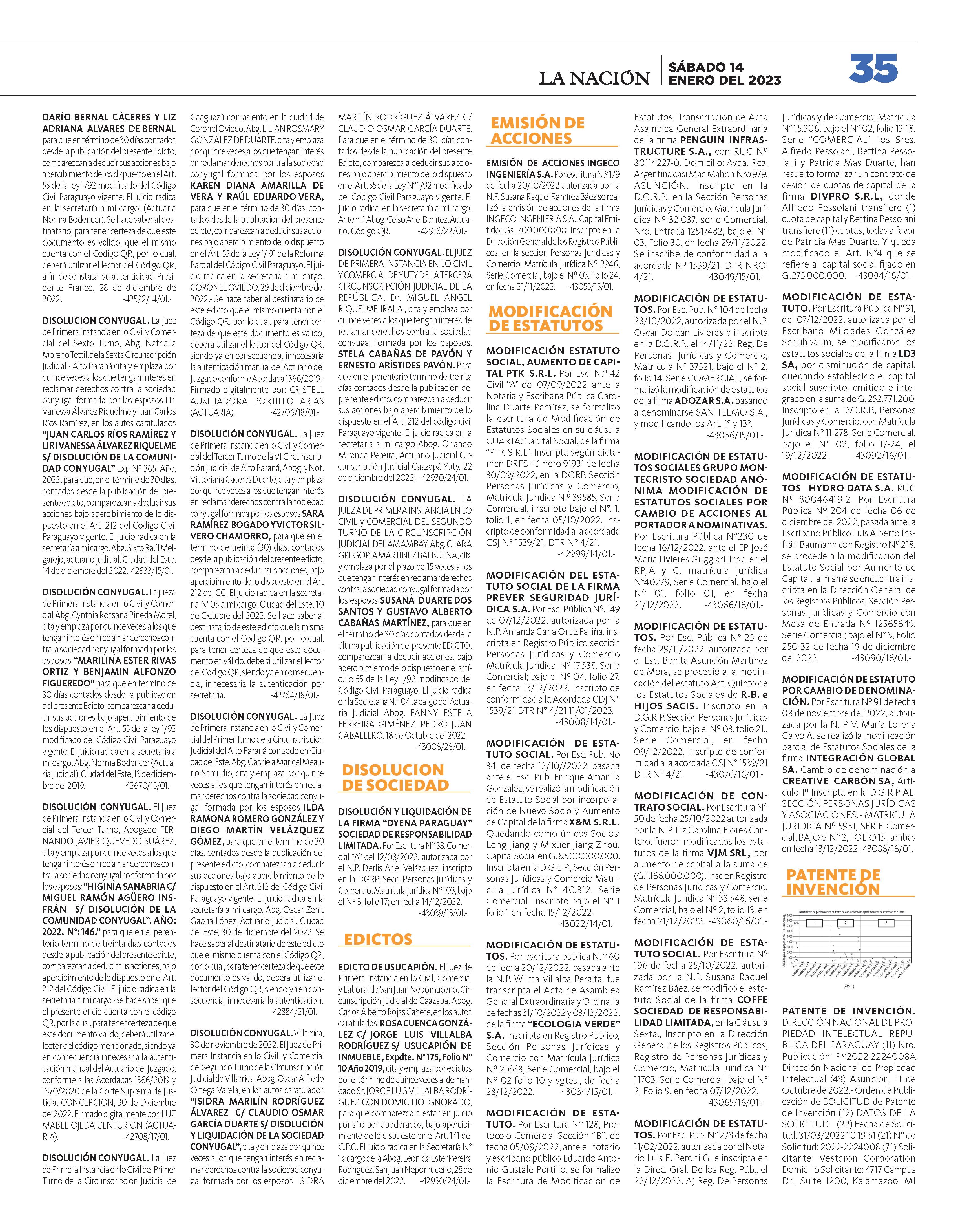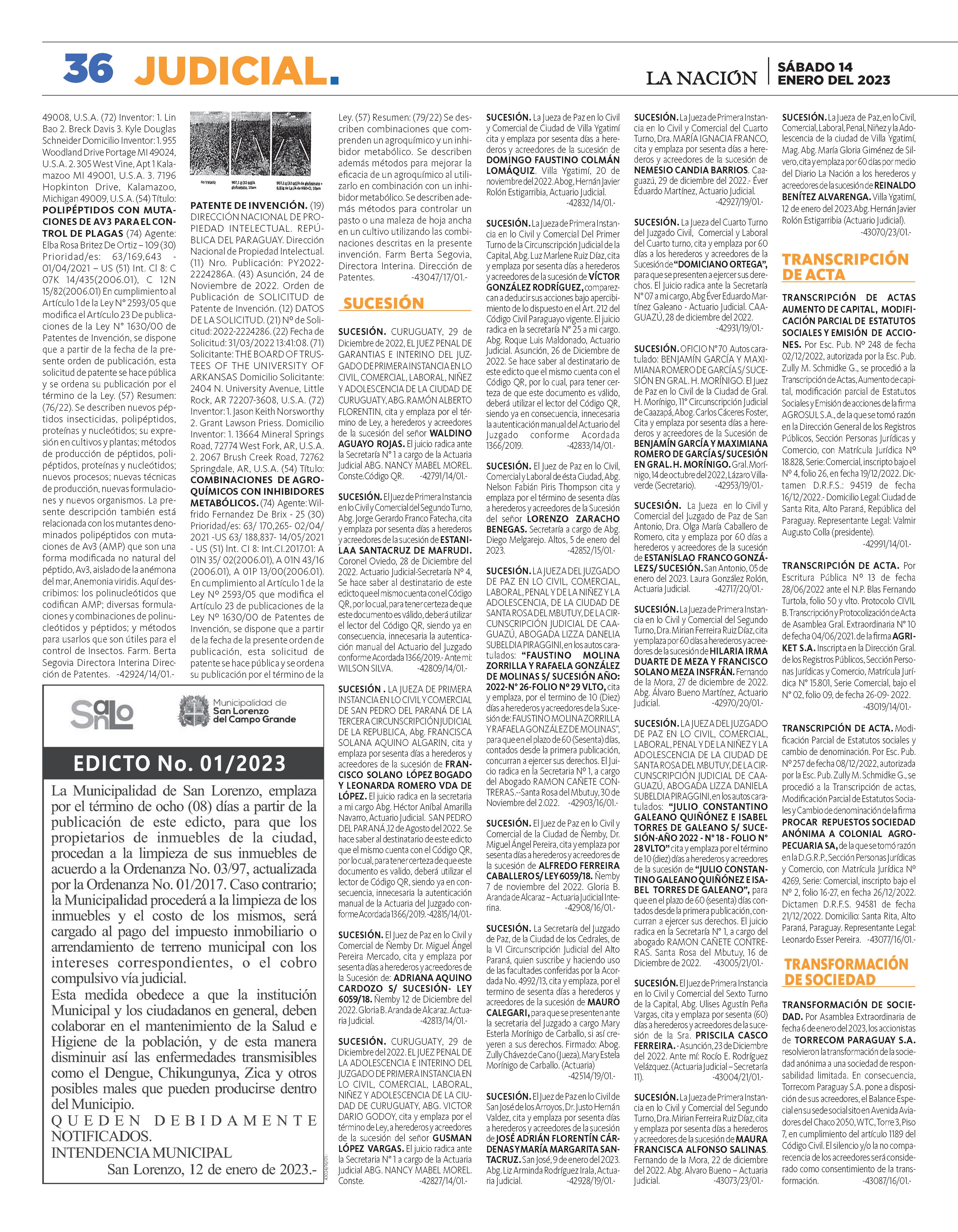 SÁBADO PARAGUAY AÑO 28 · Nº 10.043 G. 6.000 ENERO DEL 2023 14 LA NACIÓN DEL FINDE S CIRCUITO CERRADO DE LOCAL DE VOTACIÓN CONFIRMARÍA ILÍCITO Fraude en la Concertación: Fiscalía imputa a siete liberales Cactus con flores: belleza singular MUNDO VERDE EURO 7.300 7.750 COTIZACIONES COMPRA VENTA DÓLAR CHEQ. 7.310 7.360 PESO ARG. 18 26 DÓLAR EFEC. 7.220 7.330 REAL 1.390 1.490 16 La corona de Miss Universo tendrá una nueva dueña Euclides: “Hay que recuperar la fortaleza del campo” Peña y Alliana llevan apoyo a candidatos de Guairá 2 15 4 HOY EN EEUU RESERVA MORAL LISTA 1 Cerro Hu: Invitan a una mágica experiencia astronómica CAMPAMENTO CÓSMICO 18 3 ~