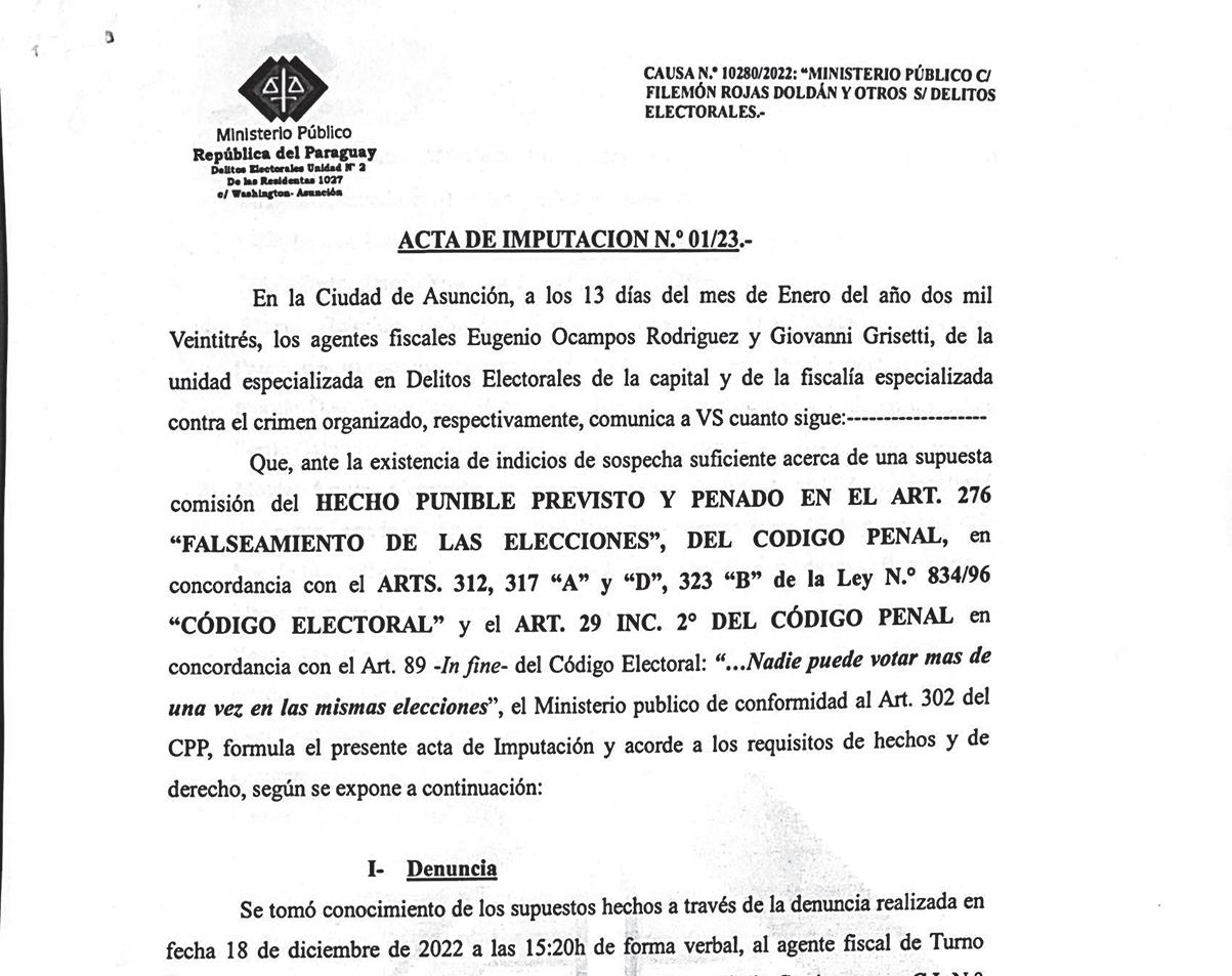 Los imputados son Filemón Rojas Doldán, delegado electoral; Jaime Alfredo Salinas Alfonzo, Lourdes R. Martínez, María Griselda Bobadilla, María Estela Cristaldo D., Paola V. Kiese y Laura M. Fernández P.