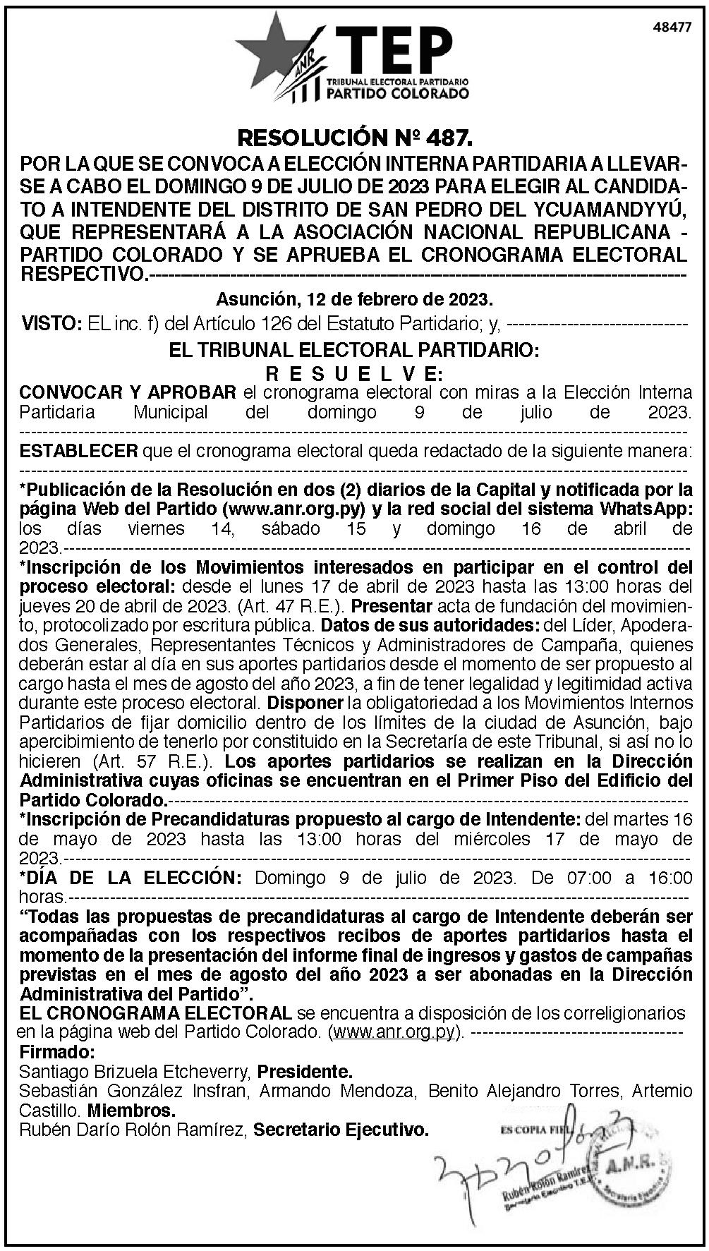 El Instituto de Acción Republicana (Inare) destaca también el cumplimiento de la ley electoral por parte del Partido Colorado.