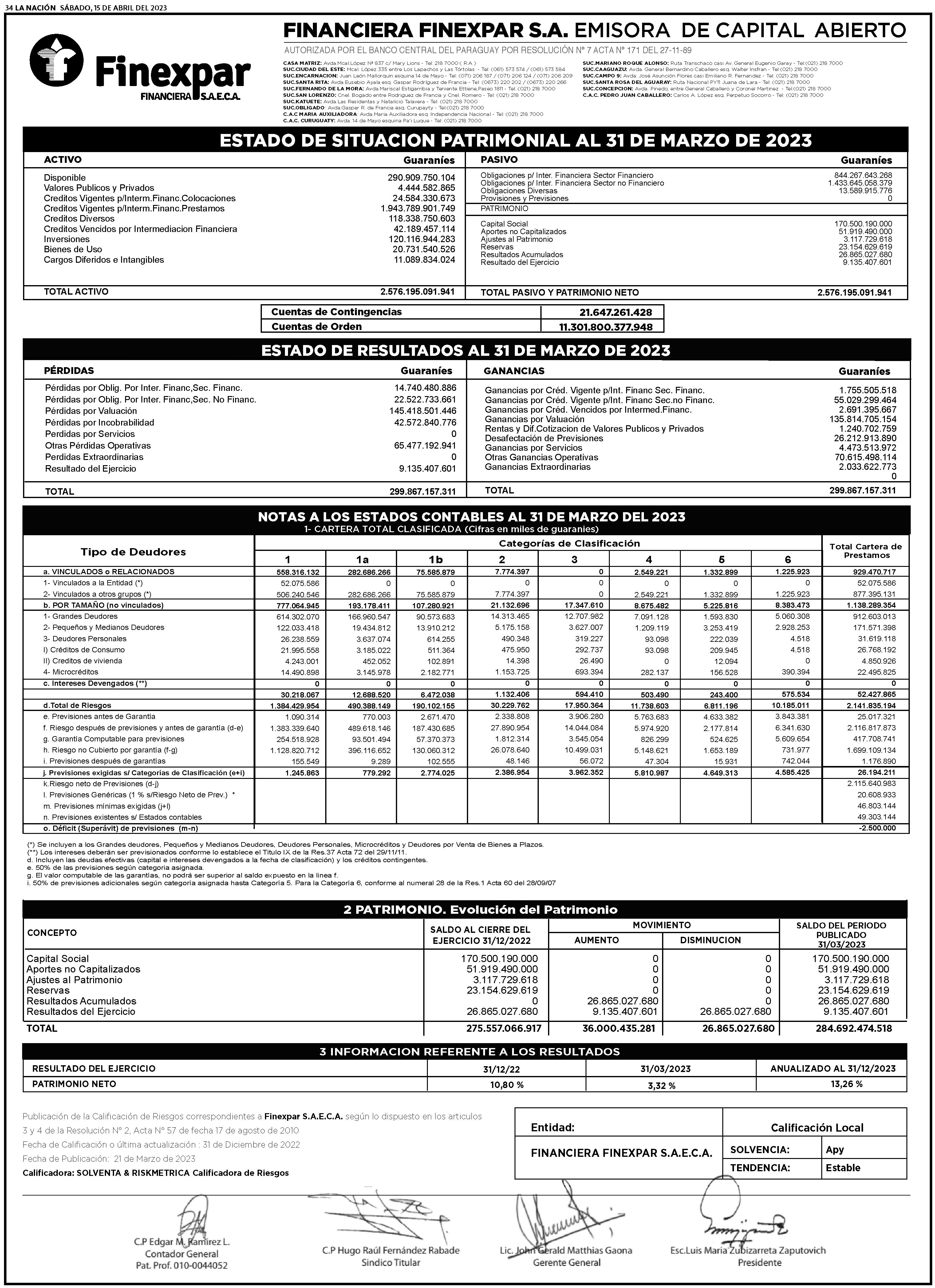 Peña creció nuevamente en números para los primeros días de abril en la encuesta realizada por Grau & Asociados, llegando al 47,5%. Alegre quedó con 20,6% y Cubas con 16,1%. En la última encuesta realizada la semana pasada, por EcoData, Peña mantenía una amplia ventaja con el 40%, Alegre seguía con el 30%, mientras que Paraguayo Cubas llega al 20% de intenciones de votos.