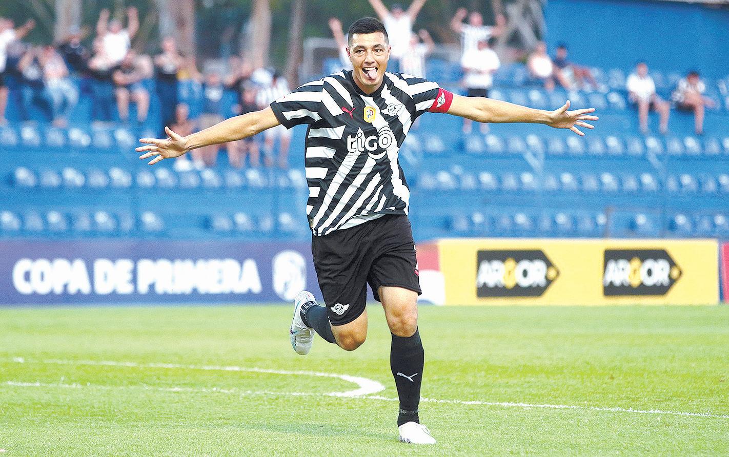 El liberteño Óscar Cardozo, la figura del partido, festeja su gol, el primero del único líder
