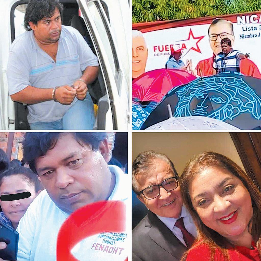 Cándido Alcides Valenzuela Mora es detenido y esposado, denunciado por estafa ante el Ministerio Público por la entonces ministra de la Senavitat, Soledad Núñez. Ahora aparece como operador político del oficialismo y dirigente de una organización social. Al lado, el director de Yacyretá, Nicanor Duarte Frutos, y la coordinadora general de Acción Social de la entidad, Noelia Núñez de Figueredo.