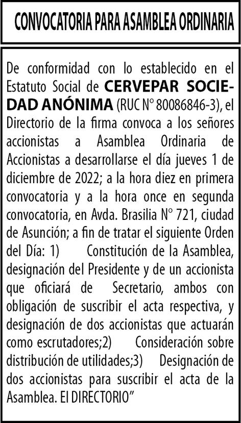 tucionalidad y consistente mente no creo que se genere ningún problema, al menos no debería generar proble mas”, remarcó Duarte, des tacando la importancia de la institución.