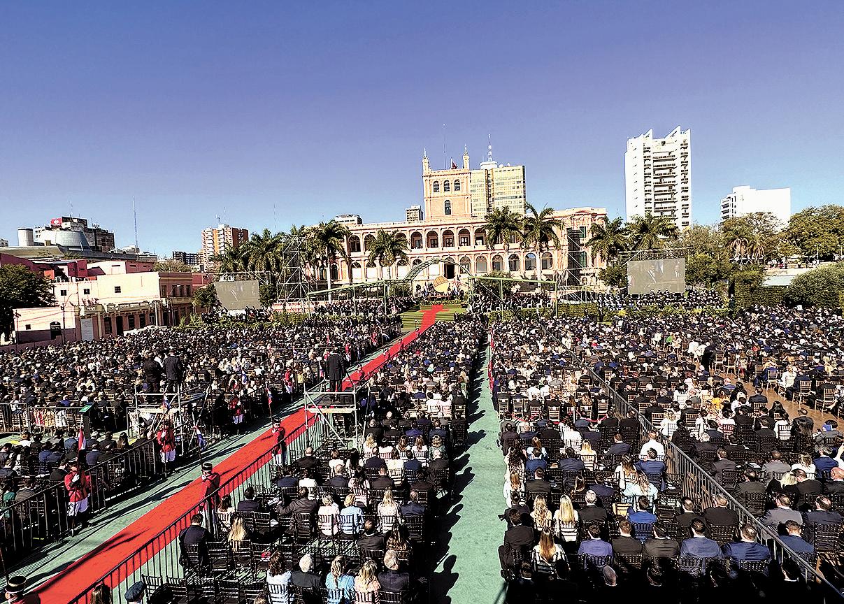 El pasado 15 de agosto, en coincidencia con el 486.º aniversario de la ciudad de Asunción, se realizó la ceremonia de traspaso presidencial en la cual el presidente Santiago Peña recibió los honores propios de su alta investidura y realizó su discurso inaugural. En este Ojo te presentamos algunos de los momentos más destacados de la jornada desde la mirada de fotorreporteros de La Nación/Nación Media. P. 32-33