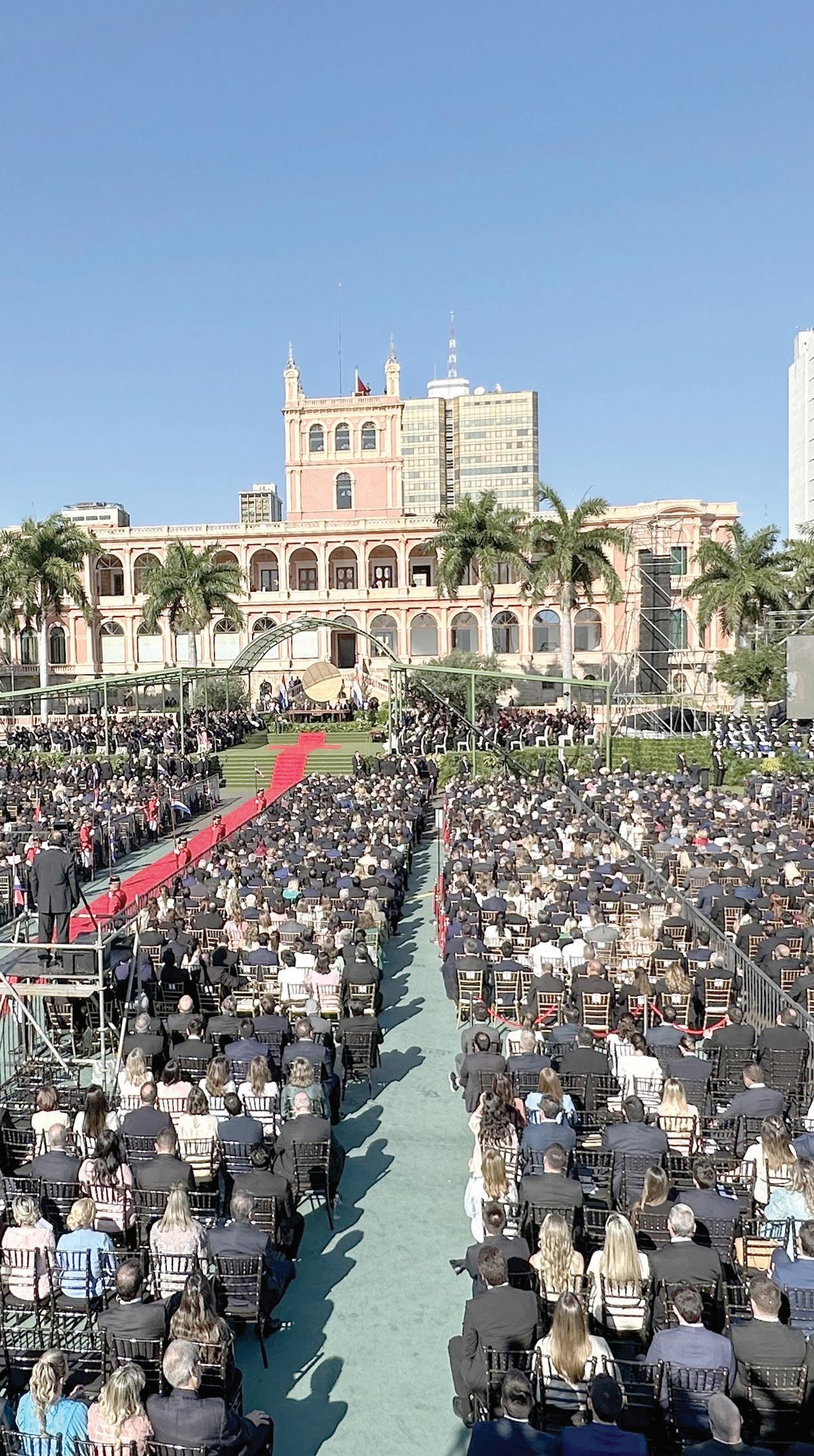 El pasado 15 de agosto, en coincidencia con el 486.º aniversario de la ciudad de Asunción, se realizó la ceremonia de traspaso presidencial en la cual el presidente Santiago Peña se comprometió a trabajar incansablemente por el bienestar de todos los habitantes del país para que todos los paraguayos estén mejor. P. 32-33