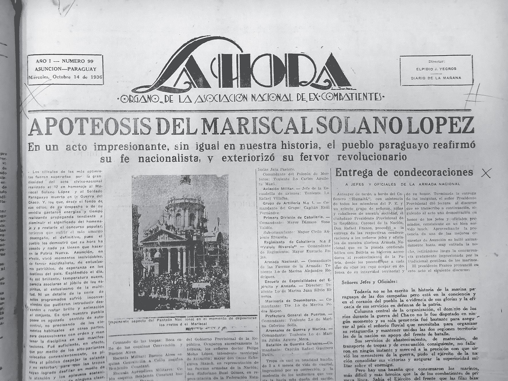 Francisco Solano López al Panteón Nacional de los Héroes en octubre de 1936 generaron una de las mayores concentraciones ciudadanas en la historia del Paraguay. Luego del solemne e histórico acto, la gente se volcó a celebrar en el parque Caballero. P. 29