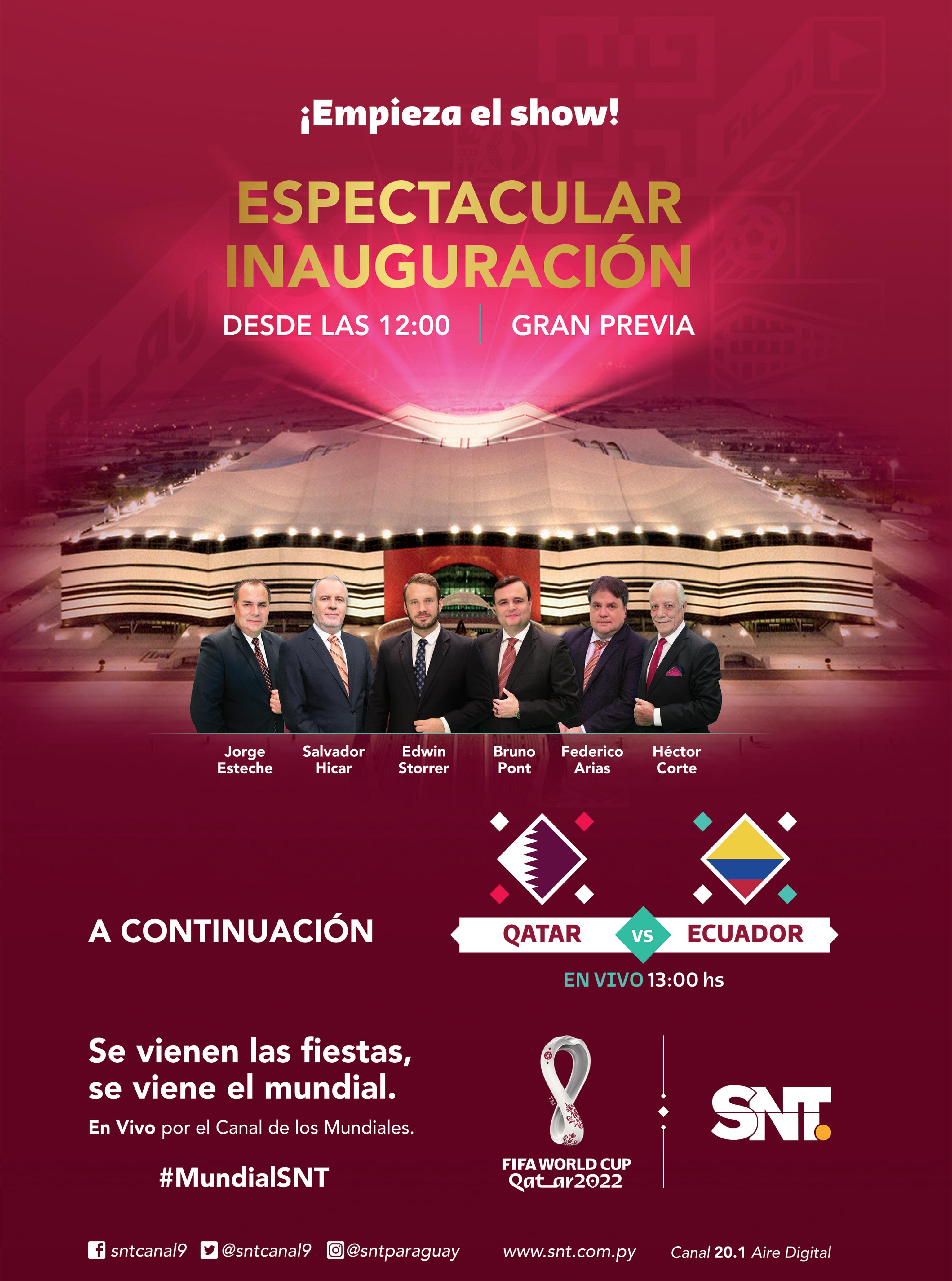 Qatar Ecuador Domingo 20/11 - 13:00 DOMINGO 20 DE NOVIEMBRE DEL 2022 PARAGUAY AÑO 28 · Nº 9.989 G. 10.000 NADIA MONGES EL ANFITRIÓN Y ECUADOR ARRANCAN LA FIESTA: El balón se pone a rodar y el mundo se detiene: comienza el Mundial Qatar 2022 P. 64 Y 66 A 68
