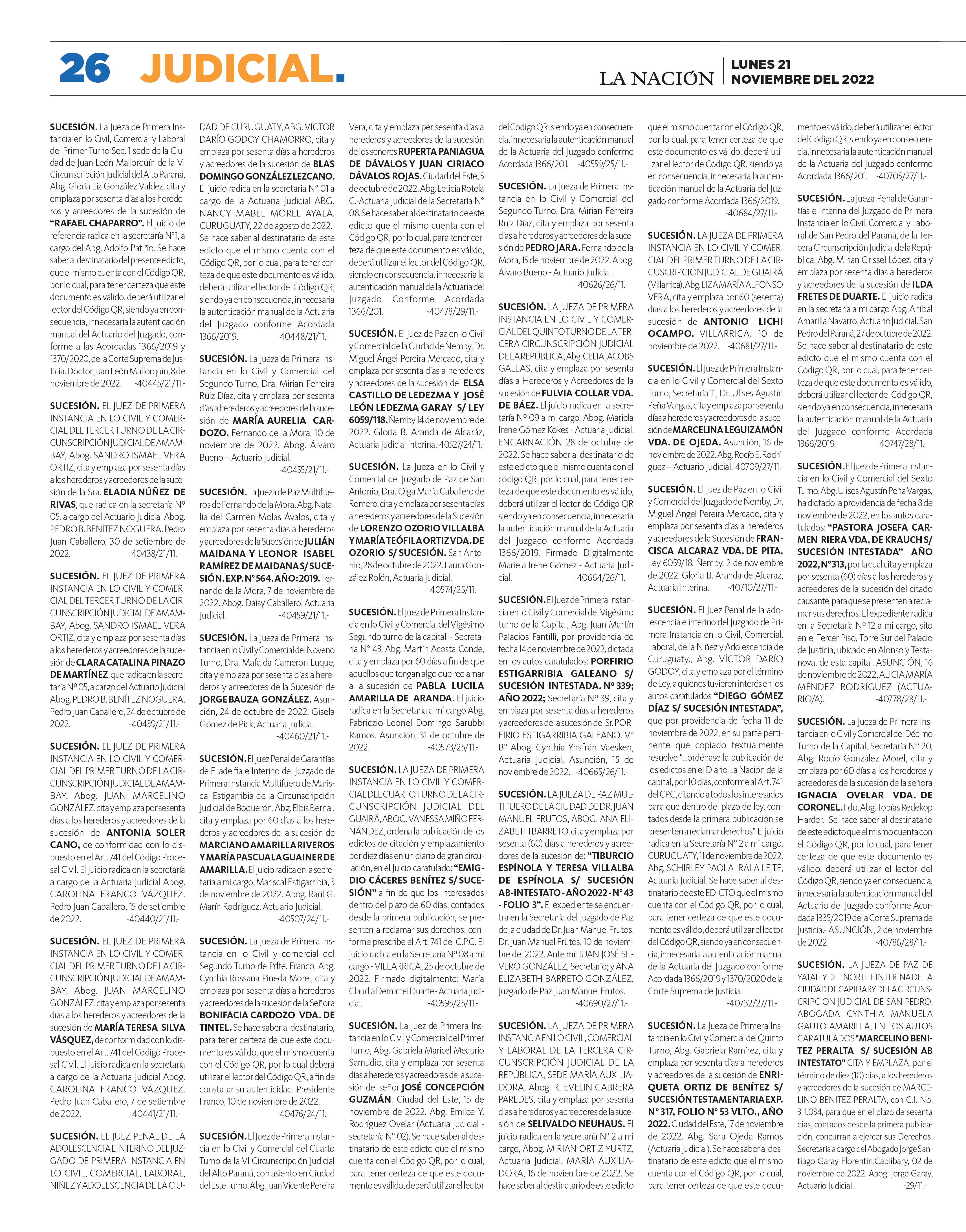 zos lega les para selec cionar una terna “confiable” para fiscal gene ral del Estado y ahora hipo téticamente para un nuevo integrante de la CSJ, cuyos mandatos fenecen recién en marzo del año próximo. Todo para garantizar en el futuro próximo la impuni dad de los fraudes perpetra dos en el presente contra los bienes públicos. Todo para