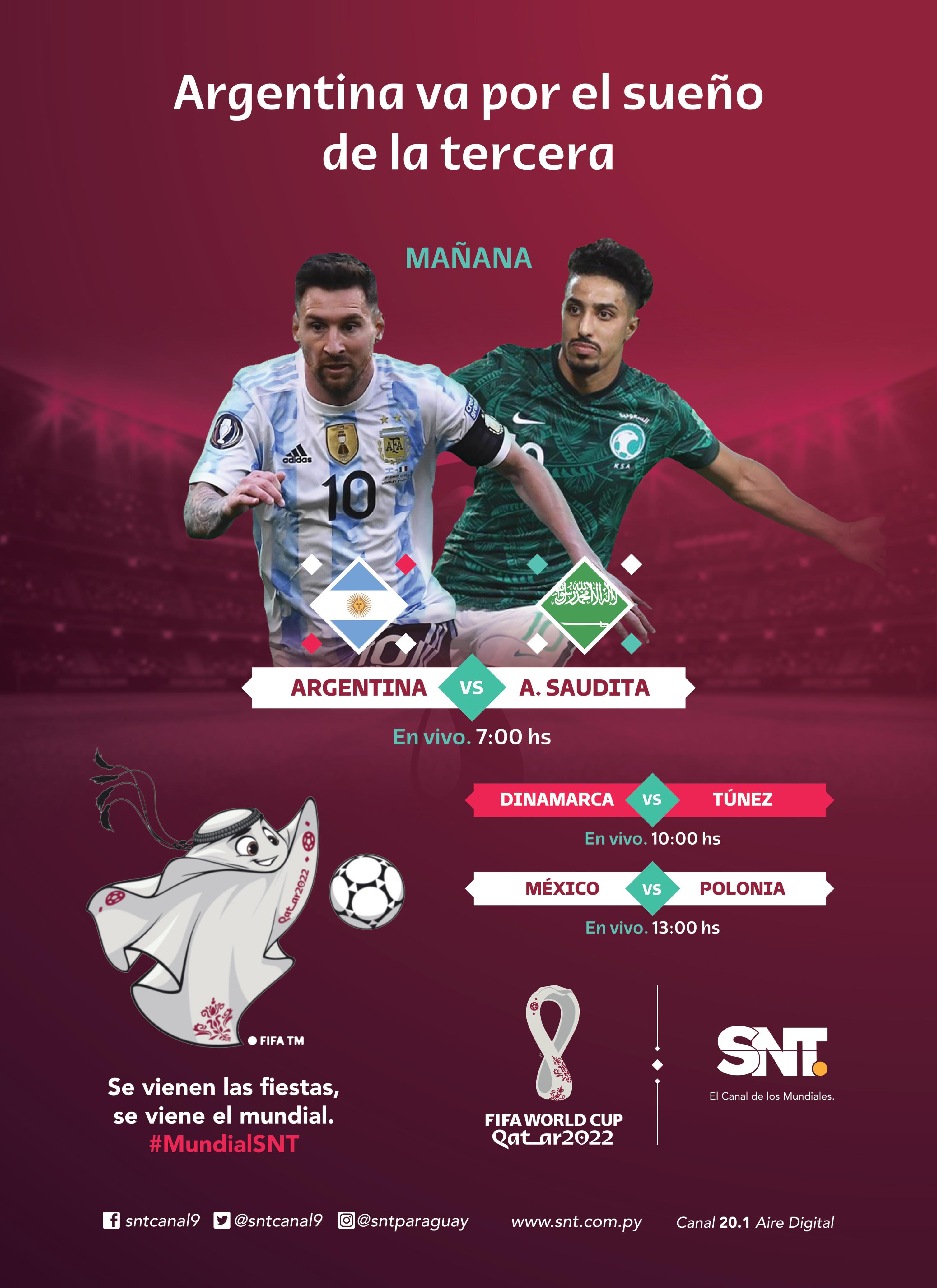 Los argentinos sueñan con el tercer título mundial con su estrella Lionel Messi. La albiceleste debuta mañana (07:00) frente a Arabia Saudita, en el marco del Grupo C y son favoritos.
