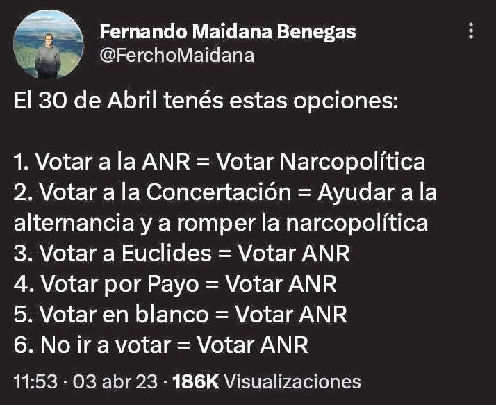 yanqui y su marido en Paraguay, pero ‘el cambio llegó’, el tweet borró, y de stronista pasó a concertado. Y su línea editorial, también”.